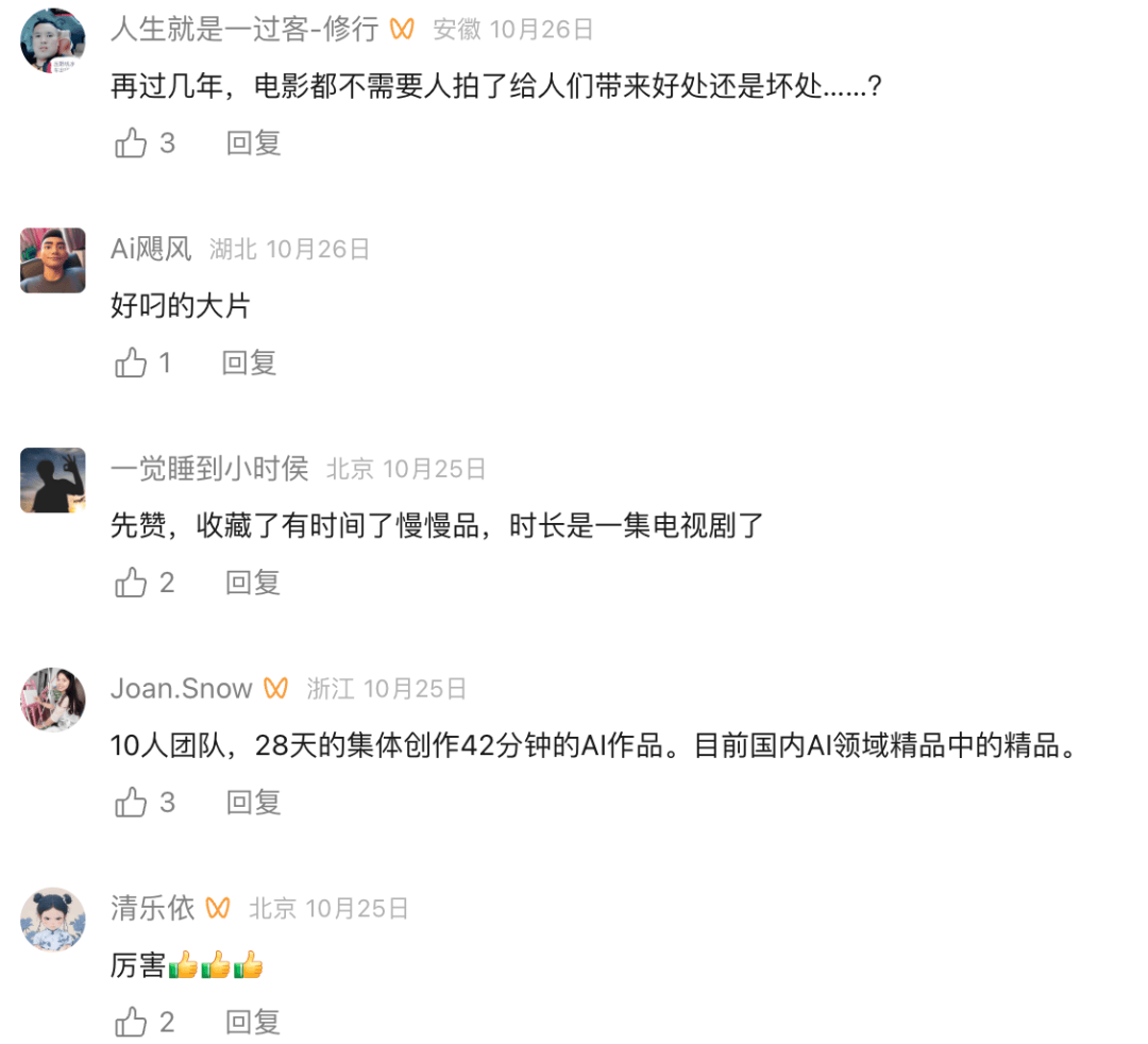 虽然做品还存正在瑕疵,但跟着模子的迭代必然能处理。就此打开了新世界的大门。保守导演会很快入手,其实我国有良多大IP期待开辟,我们都能坐正在片子院里赏识纯AI片子。查看更多率直讲,也许很快这个壁垒就会被间接打破,也会快速产出好做品。