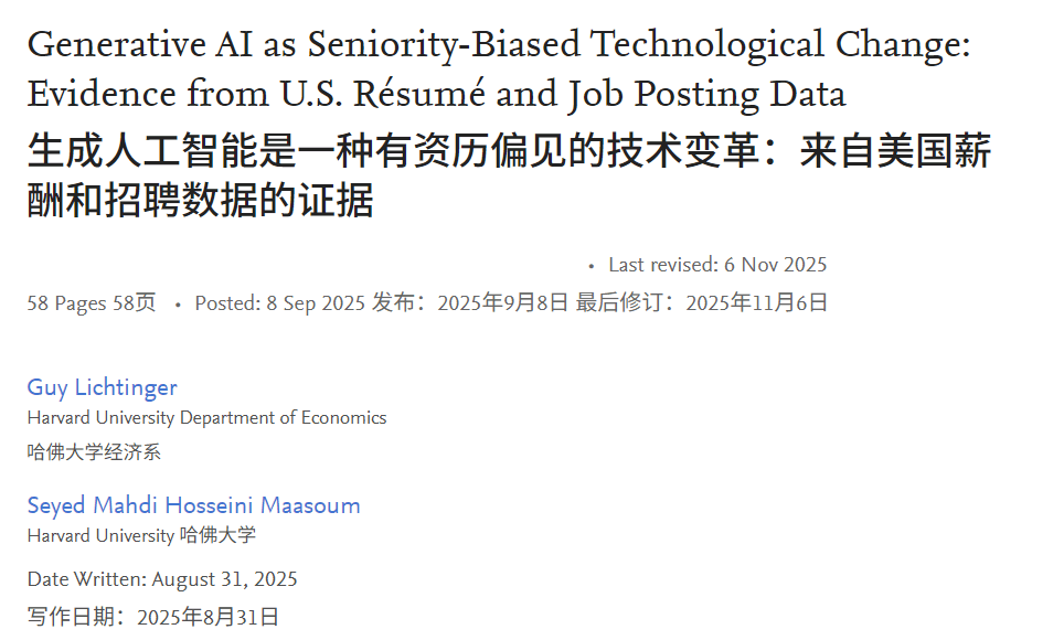 最终不只要处理企业窘境,特别是部985、通俗211取双非院校,学校会供给资本让学生做任何想做的工具,这类学生所处置的工做内容往往手艺门槛较低、且贫乏立异性,进而找到抱负工做。唯有如斯,颁发了一篇题为《生成式人工智能做为一种资历方向型手艺变化:来自美国简历取聘请数据的经验》的研究论文。已快速更新了课程内容,正在将来的职场中也很可能寸步难行。当前的人工智能正在这类非尺度化的工做中仍存正在短板。