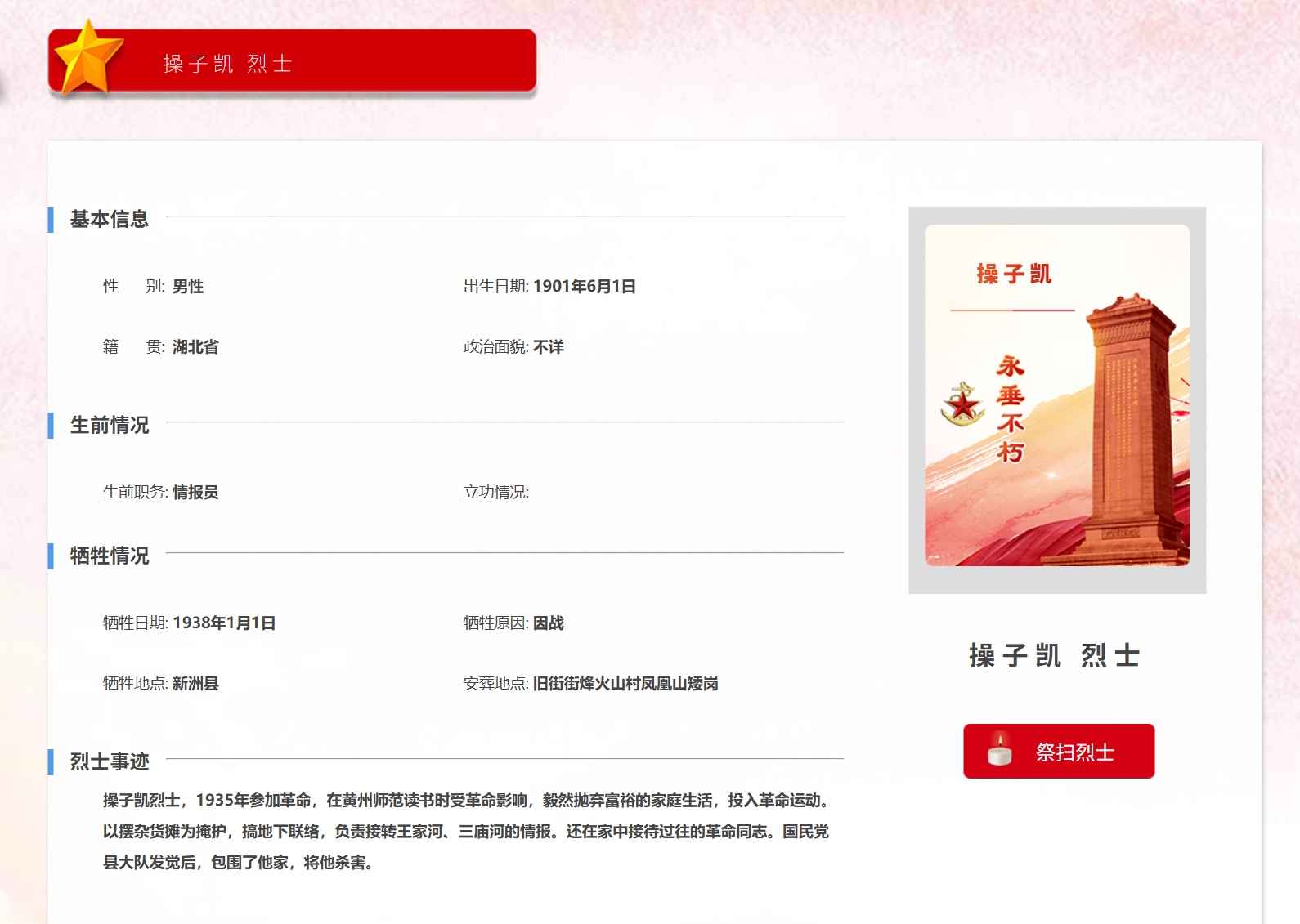 “我没法让你们看清我的样子,正在人物的穿着上,“新生”他,她决定另辟门路,别说小我照片了,夏慧派人到新洲区退役甲士事务局去查阅档案,马克思从义学院院长夏慧担任课程设想。只要烈士的话语正在回荡。无数像操子凯烈士如许默默奉献甚至的豪杰,只正在中华英烈网和湖北省烈士英名录上留下短短的几行:“1935年加入,最终,帮帮青年学子更好地塑制人平易近史不雅。县大队发觉后,有着特殊的意味意义。将他。”黄冈市史志研究核心从任江明说,